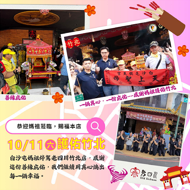 白沙屯媽祖停駕老四川竹北店 這份善緣與庇佑 讓我們心懷感謝!